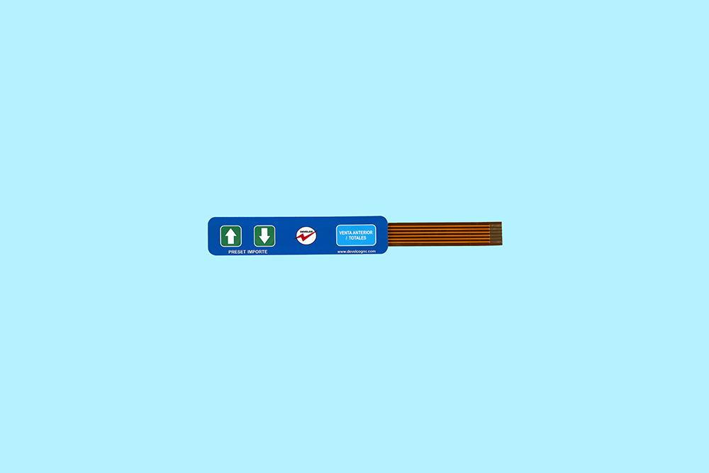 薄膜开关是集按键功能、指示元件、仪器面板为一体的一个操作系统。由面板、上电路、隔离层、下电路四部分组成。按下薄膜开关,上电路的触点向下变形,与下电路的极板接触导通,手指松开后,上电路触点反弹回来,电路断开,回路触发一个信号。薄膜开关结构严谨,外形美观,密封性好。具有防潮湿,使用寿命长等特点。广泛应用于电子通讯、电子测